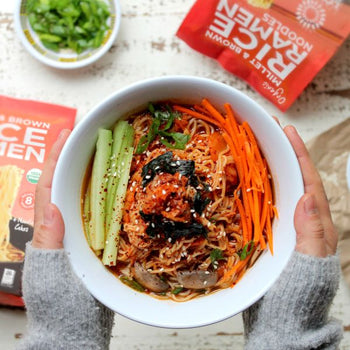 Add broiled onions, ginger, and garlic together with the water, vegetable broth, shiitake stems, sugar, soy sauce, sea salt, and rice vinegar. Stir until well mixed, then bring to a simmer, place the lid on, and cook for at least 1 hour, up to 6 hours. The longer you cook the broth, the more flavorful it will be.