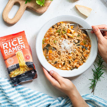 Add noodles to a bowl with chickpeas, green onion, and cilantro, and garnish with black sesame seeds. Serve immediately.
