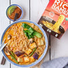 For the curry: place veggie stock, red curry paste, and fried shallots in a pot, then bring to boil while stirring continuously until the paste dissolved. Season and add in coconut milk.