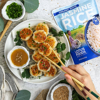 Heat oil in a large non-stick pan over medium-high heat. Add mushrooms, tofu, carrot, garlic, ginger, rice, cilantro, soy sauce/tamari, sesame oil, and black pepper. Sautรฉ for 5 mins, then set aside.