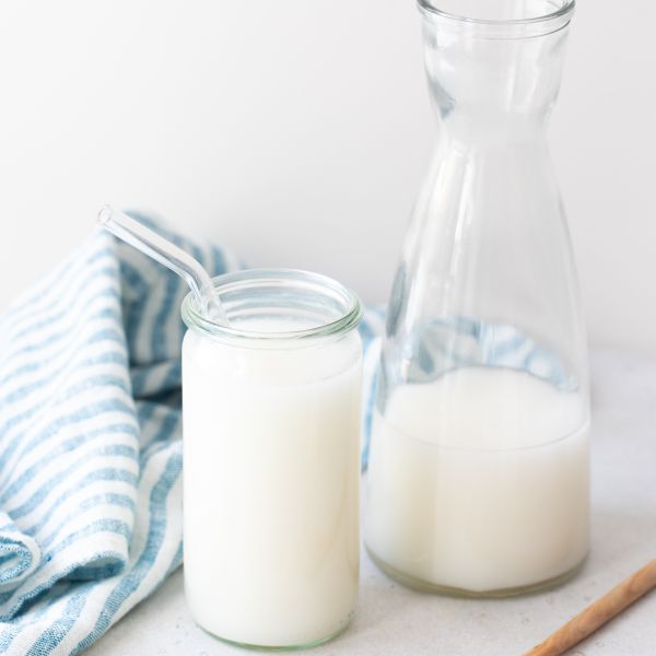 Double up a nut milk bag and pour the milk through it, repeating this step 2-3 times, until most of the solids are removed.