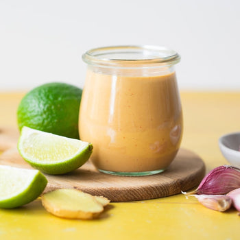 Add orange juice, zest, brown sugar, soy sauce, rice vinegar, garlic, and ginger to a small saucepan over medium high heat and bring to a simmer.