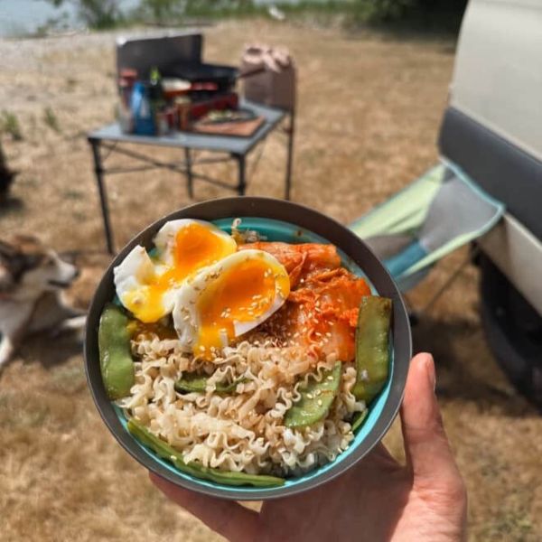 Serve with kimchi and egg (or any other favorite toppings).