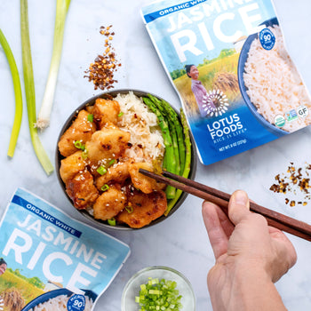 While sauce is cooking, prepare rice according to directions on package. Serve immediately with sauce and your choice of toppings.