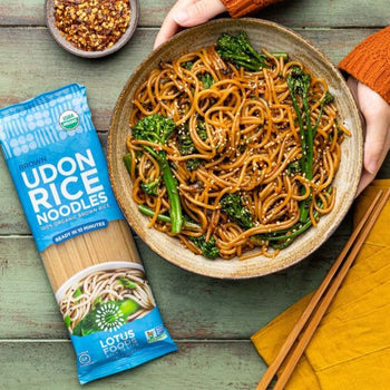 Season noodles with soy sauce, dark soy sauce, brown sugar, and vinegar, then add in minced garlic, grated ginger, chili flakes, and green onions.