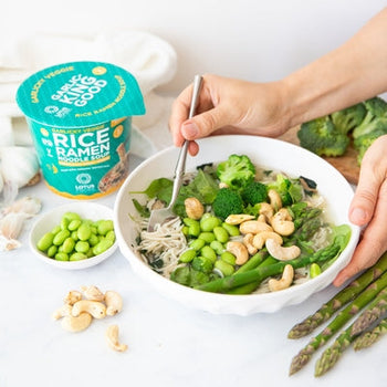Add ramen soup seasoning packets and water, setting aside the noodles. Bring to a simmer.