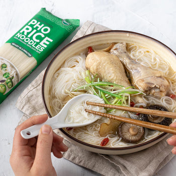 Assemble noodles in bowl, add soup and serve with toppings.
