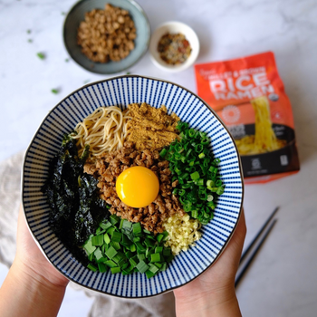 Slather with sauces, and top with a handful of chopped scallions, toasted nori sheets and sesame seeds.