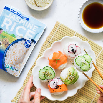 Add rice to a heatproof bowl and cover with boiling water. Allow to soak for 20 mins, then drain and gently press rice to remove any excess water. Transfer rice to a medium-sized mixing bowl.