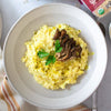 Divide risotto between serving bowls, top with sautéed mushrooms, garnish with lemon zest and more chopped parsley. Drizzle with more lemon butter sauce as preferred and serve immediately. For a slightly creamier dish, add 1 tsp almond or cashew butter.