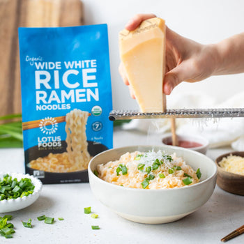 Meanwhile, whisk together mayo, soy sauce, nutritional yeast, egg yolk, garlic, and onion powder in a medium bowl. Add broth (or a splash of ramen cooking water) until the sauce is smooth and creamy.