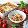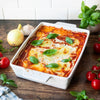 3Bake for 40-50 mins, until lasagna is firm and browned on top. Remove from oven and cool for 10 mins.