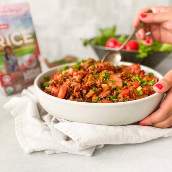 Stir in broth and orange juice. Bring to a boil, then reduce to a simmer, cover with a lid and cook for 50 mins. Once cooked, remove from heat and let sit, covered, for another 10 mins.