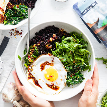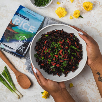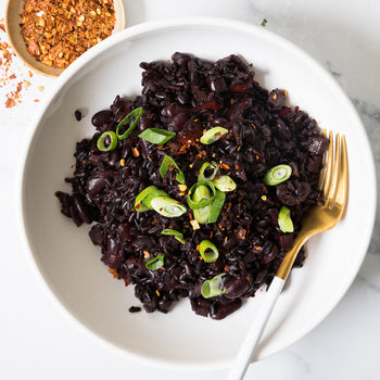 Once rice is cooked, combine with roasted squash, pomegranate seeds and scallions, then toss with yuzu ginger vinaigrette.