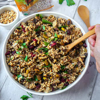 To serve: divide rice, chicken, collard greens, and peas between two large bowls and top with tomatoes and pickled onions.