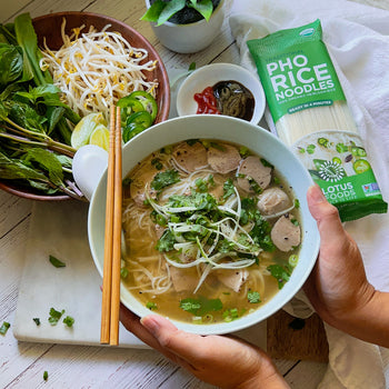 Divide noodles between serving bowls. Ladle in the soup and top with steamed greens, fresh cilantro and/or mint, fried onions, chilies, and lime wedges. Serve immediately.