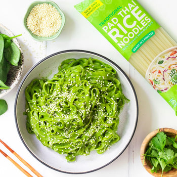 Divide noodles between bowls, top with sauce, and garnish with lime wedges and sesame seeds.