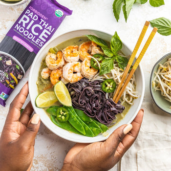 Working one rice paper at a time, soak in water until pliable, then place on cutting board or clean countertop. Add the noodles, carrot, cabbage, kale, pomegranate seeds and mint in a long pile just below the center of the paper. Fold the sides inward, then roll up tightly. Repeat until all the filling is used.