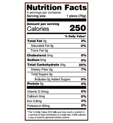 Serving size 1/2 piece serving size