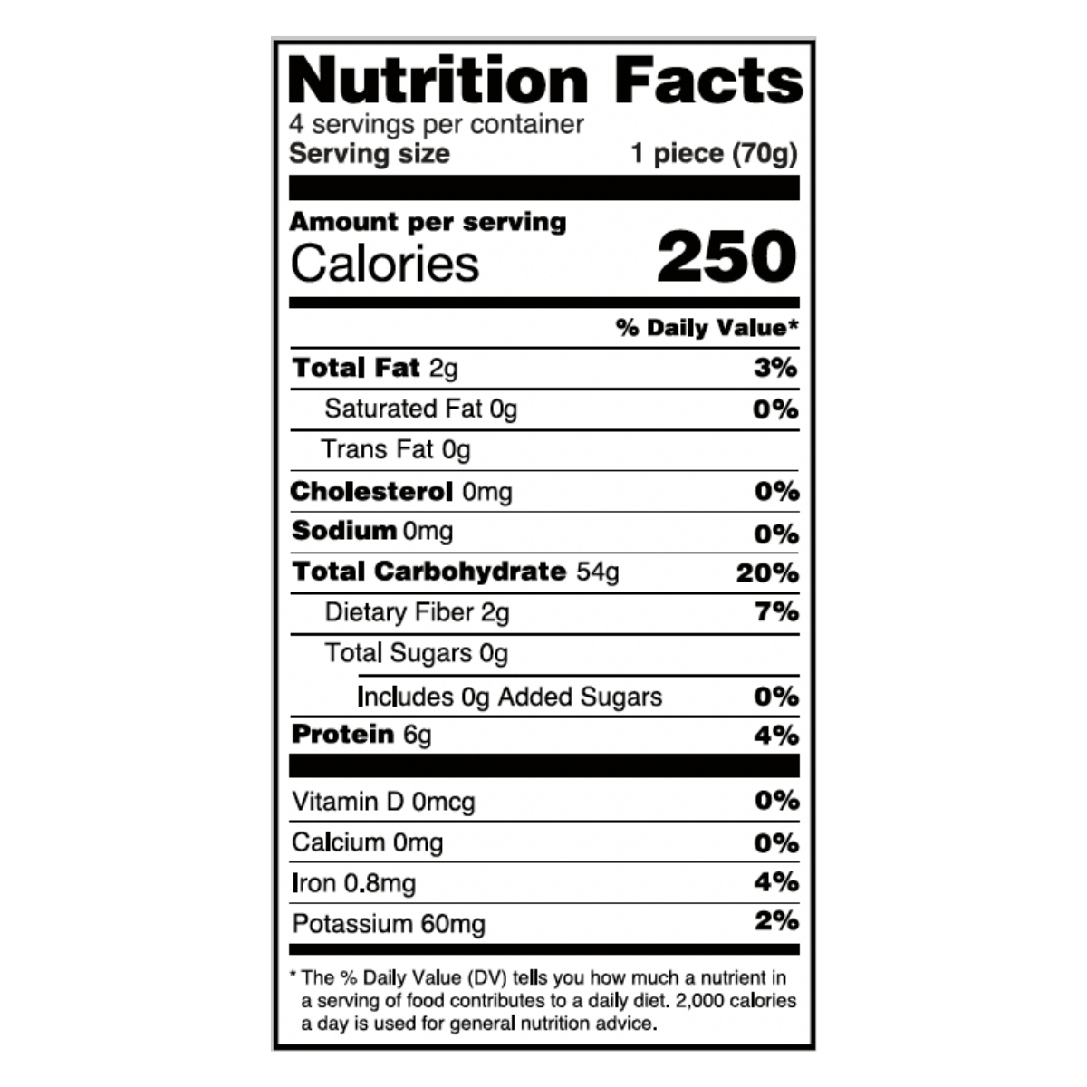 Serving size 1/2 piece serving size