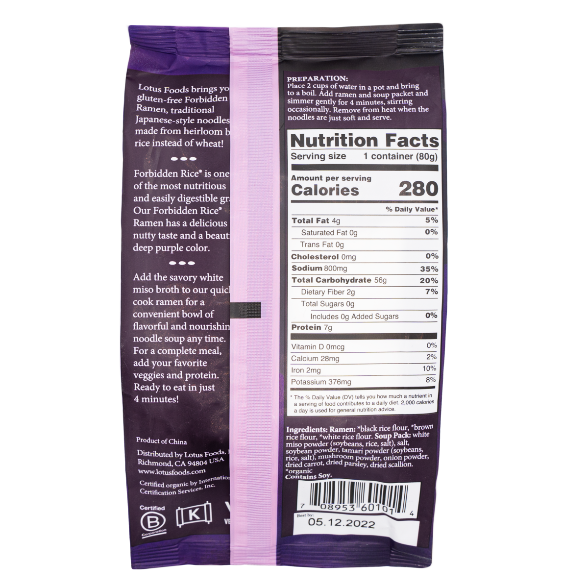 Forbidden Rice® Ramen noodles have a delicious nutty taste and are a natural source of antioxidants (anthocyanins), magnesium, protein, and fiber. Ready to eat in just 4 minutes – perfect for a quick meal on the go! For a complete meal, add in your favorite protein and veggies.