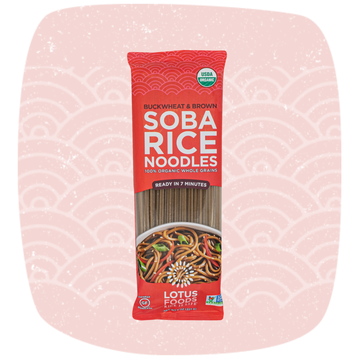 Our Organic Buckwheat & Brown Soba Rice Noodles combine organic buckwheat – the seed that gives such valued taste and nutrition – with organic whole grain brown rice to create a beloved yet gluten-free Japanese-style Soba noodle. With its rich and nutty taste, serve chilled with a dipping sauce, in a hot broth, or in any pasta or stir-fry.
