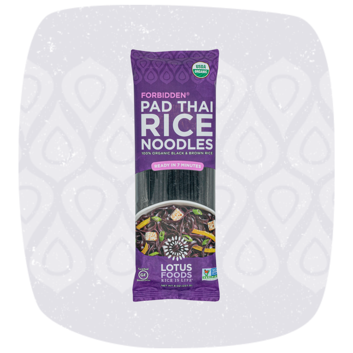 Our Forbidden® Pad Thai Rice Noodles are crafted from organic, whole grain black rice. Legend says this ancient grain was once reserved exclusively for the Emperors of China, to ensure their longevity and good health. This heirloom rice is treasured for its delicious roasted nutty taste, soft texture and beautiful deep purple color. These convenient, versatile noodles are perfect for making a more nutritious Asian-style dish, or use them as a gluten-free replacement for pasta.