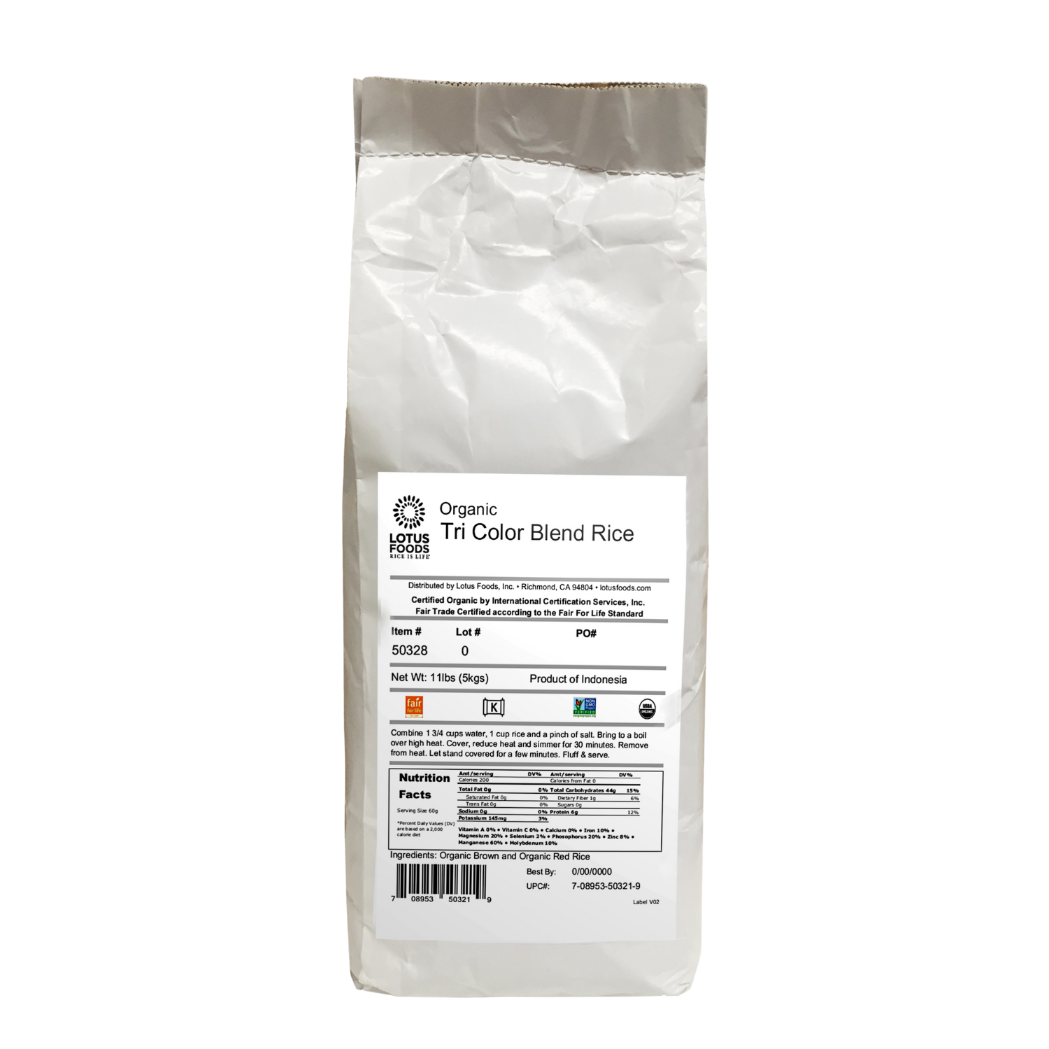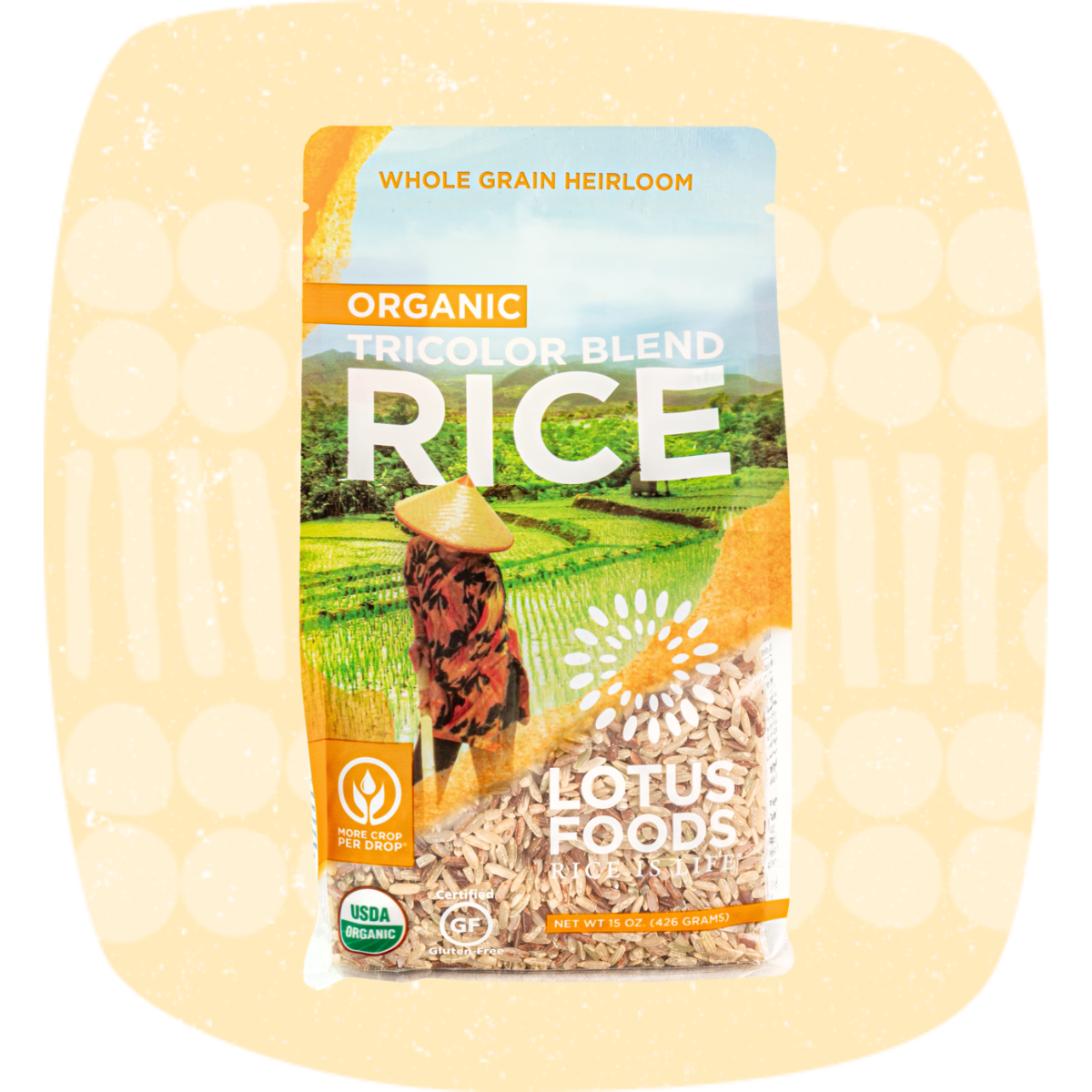 Organic Tricolor Blend Rice is a colorful blend of prized traditional brown and red heirloom rice grown on West Java’s mineral-rich volcanic soil. Fragrant and nutrient-dense, Organic Tricolor Blend Rice cooks in only 30 minutes producing tender grains with an aromatic hint of vanilla. It’s an excellent choice for any dish where you would use a wild rice or whole grain blend.