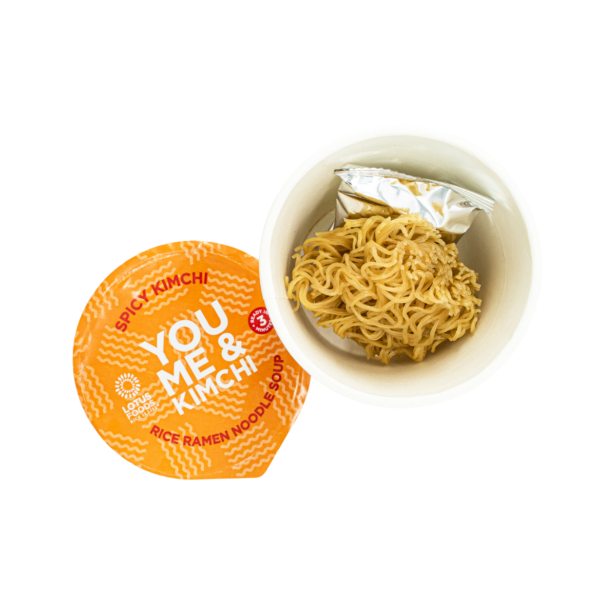 Our Spicy Kimchi Rice Ramen Noodle Soup Cup features a spicy blend of kimchi, shallots and tofu. Only freeze-dried technology delivers “good as fresh” chunky veggies that spring to life when you add water. Our freeze-dried soup cubes are packed with big pieces of veggies and gourmet spices that deliver a whole new ramen soup experience.