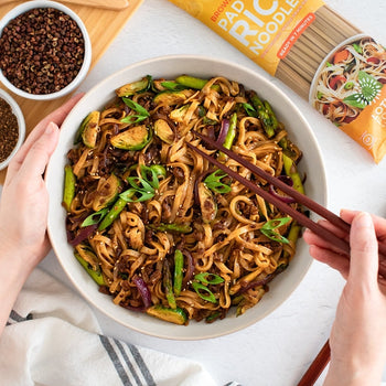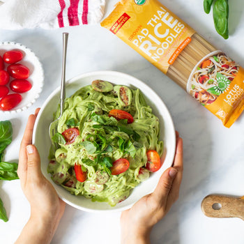 6Add cooked noodles to a bowl, then add tofu and broth. Top with scallions, bean sprouts, and lime wedges.