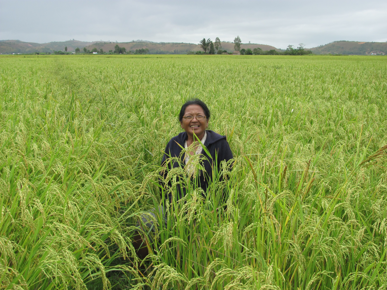 That’s how we refer to the agroecological rice-growing method System of Rice Intensification (SRI). Farmers do not need special seeds or agrochemicals. They boost yields by changing how they grow rice to optimize the plants’ development. They transplant younger single seedlings at wide spacing in rows, not random clumps of older seedlings. This reduces transplant shock and competition among plants, and enables mechanical weeding. Soils are kept moist, not flooded, promoting soil health and root growth.